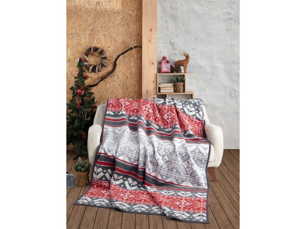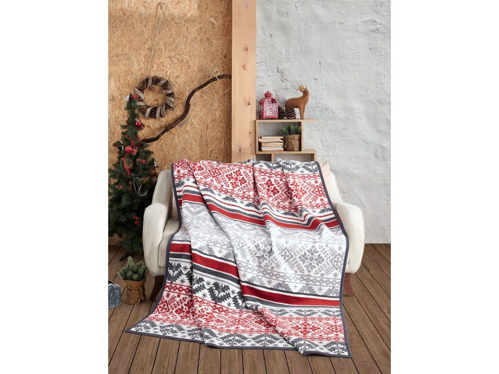 Luxuriöse Baumwolldecke mit dichtem Flor, warm und weich im Griff. Die neue Webart-Garantie für Leichtigkeit und hervorragende Atmungsaktivität. Die Adventis-Decke wird zu einem einzigartigen Accessoire in Ihrem Zuhause und einem unverzichtbaren Begleiter für kühle Abende. Die Decke kann auch elegant als dekorative Überwurf verwendet werden. Die Decke, die mit einer umgekehrten Farbgebung glänzt, ist rundum mit farblich abgestimmter Einfassung versehen. Design: Weihnachtsmuster in den Farben Weiß, Hellgrau, Anthrazit und Rot. Materialzusammensetzung: 60 % Baumwolle, 40 % Acryl. Maße: 160/220 cm. Grammatur: 450 g/m2. Die Decke kann bei 30 °C mit einem milden Waschmittel gewaschen werden.Zusätzliche Parameter
