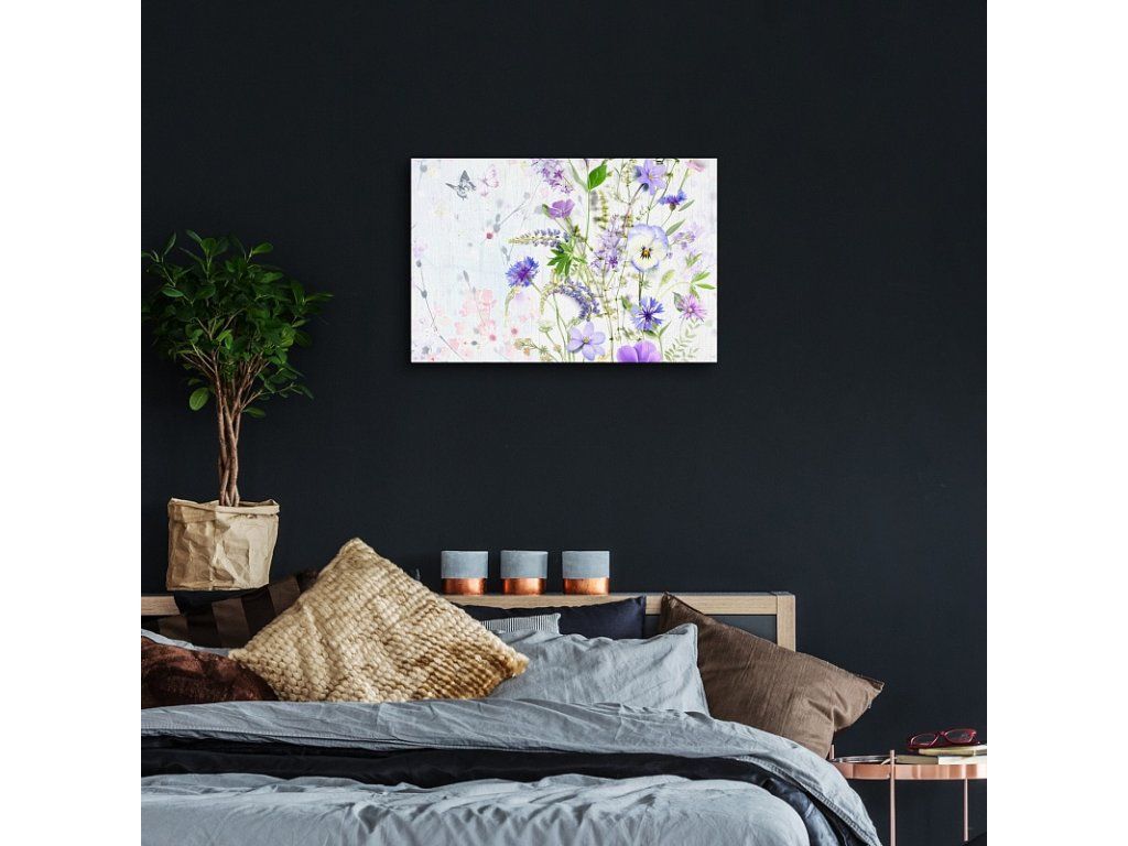 Verleihen Sie Ihrem Interieur eine außergewöhnliche Atmosphäre mit dem Gemälde Bluebell. Das Muster des Gemäldes ist auf hochwertiger Baumwollleinwand mit unregelmäßiger Struktur Canwas PowerSol Satin gedruckt. Die Oberfläche ist reißfest und verleiht der Leinwand zudem ein samtiges Aussehen. Das Gemälde wird bereits auf einem Holzrahmen gespannt geliefert und ist mit einer Aufhängung für die Wandmontage versehen. Produkte mit demselben Motiv können aufgrund unterschiedlicher Drucktechnologien leichte Farbabweichungen aufweisen.Zusätzliche Parameter