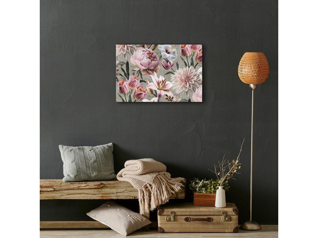 Verleihen Sie Ihrem Interieur eine außergewöhnliche Atmosphäre mit dem Gemälde Estel. Das Muster des Gemäldes ist auf hochwertiger Baumwollleinwand mit unregelmäßiger Struktur Canwas PowerSol Satin gedruckt. Die Oberfläche ist reißfest und verleiht der Leinwand zudem ein samtiges Aussehen. Das Gemälde wird bereits auf einem Holzrahmen gespannt geliefert und ist mit einer Aufhängung für die Wandmontage versehen. Produkte mit demselben Motiv können aufgrund unterschiedlicher Drucktechnologien leicht in der Farbintensität variieren.Zusätzliche Parameter