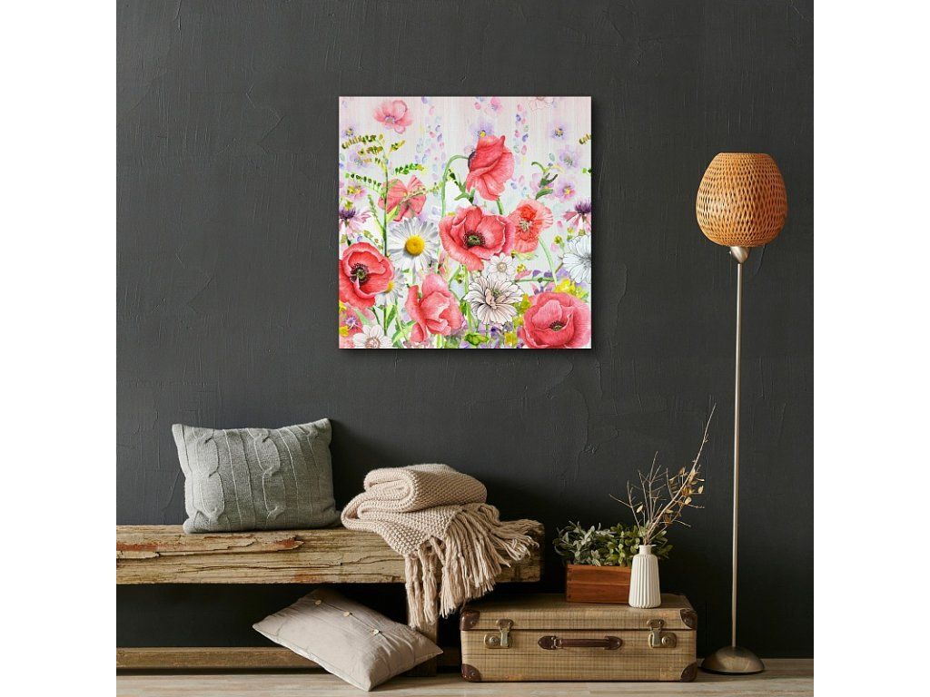 Verleihen Sie Ihrem Interieur eine außergewöhnliche Atmosphäre mit dem Gemälde Flower Dream. Das Muster des Gemäldes ist auf hochwertiger Baumwollleinwand mit unregelmäßiger Struktur Canwas PowerSol Satin gedruckt. Die Oberfläche ist reißfest und verleiht der Leinwand zudem ein samtiges Aussehen. Das Gemälde wird bereits auf einem Holzrahmen gespannt geliefert und ist mit einer Aufhängung für die Wandmontage versehen. Produkte mit demselben Motiv können aufgrund unterschiedlicher Drucktechnologien leichte Farbabweichungen aufweisen.Zusätzliche Parameter