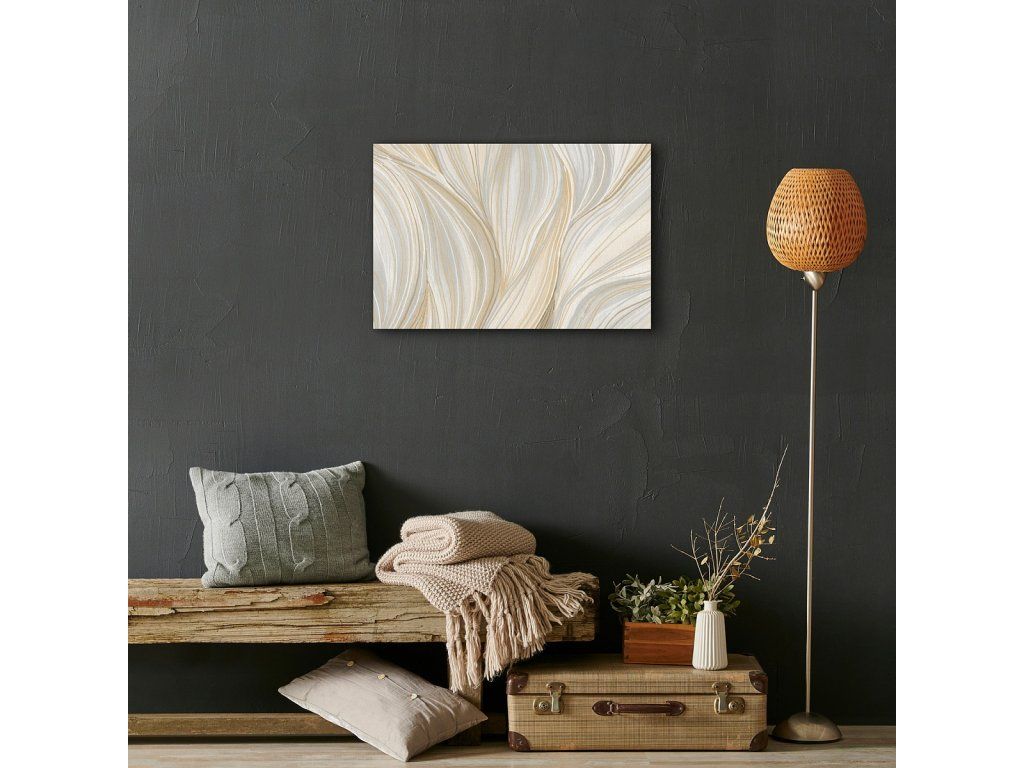 Verleihen Sie Ihrem Interieur eine außergewöhnliche Atmosphäre mit dem Gemälde Infinitum Beige. Das Muster des Gemäldes ist auf hochwertiger Baumwollleinwand mit unregelmäßiger Struktur Canwas PowerSol Satin gedruckt. Die Oberfläche ist reißfest und verleiht der Leinwand zudem ein samtiges Aussehen. Das Gemälde wird bereits auf einem Holzrahmen gespannt geliefert und ist mit einer Aufhängung für die Wandmontage versehen. Produkte mit dem gleichen Motiv können aufgrund unterschiedlicher Drucktechnologien geringfügige Farbabweichungen aufweisen.Zusätzliche Parameter
