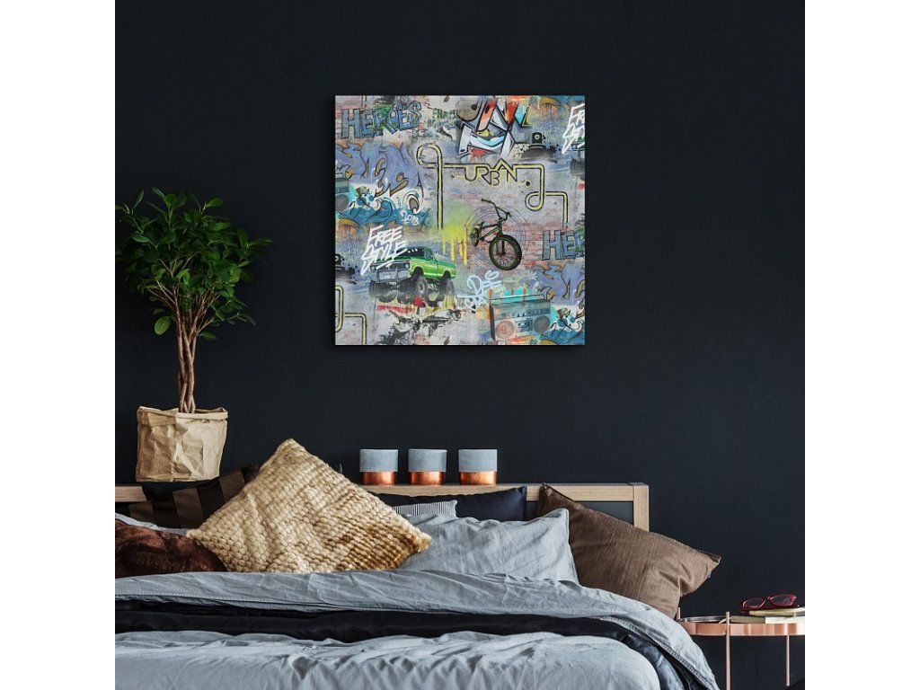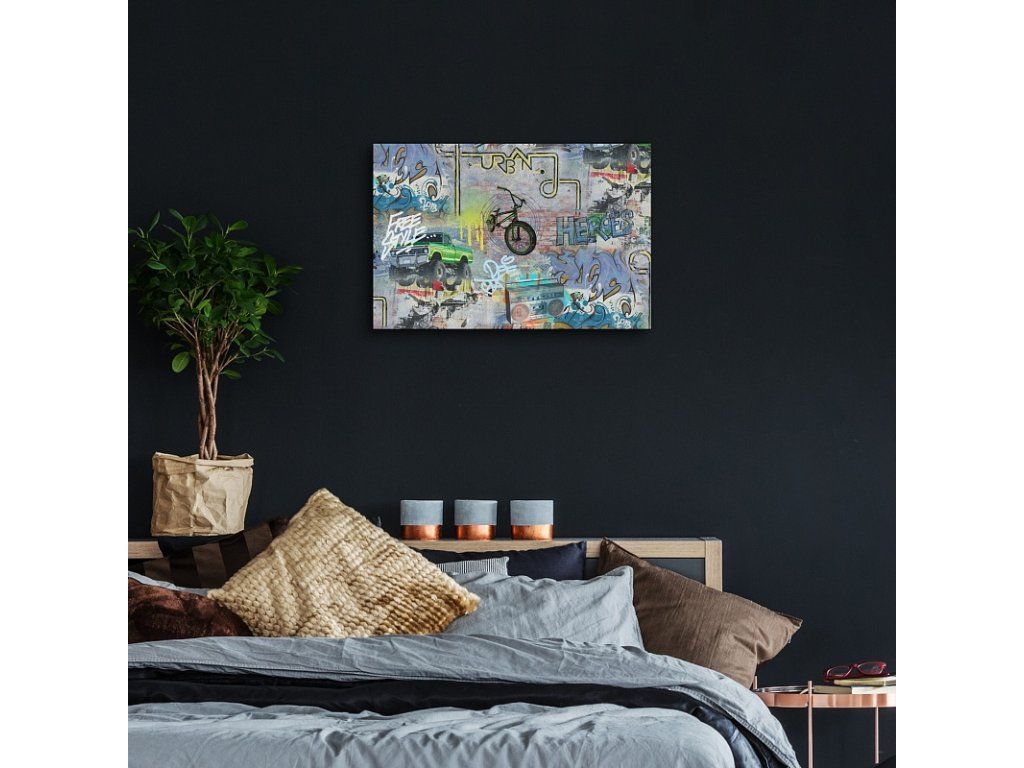 Verleihen Sie Ihrem Interieur eine außergewöhnliche Atmosphäre mit dem Gemälde Tommy. Das Muster des Gemäldes ist auf hochwertiger Baumwollleinwand mit unregelmäßiger Struktur Canwas PowerSol Satin gedruckt. Die Oberfläche ist reißfest und verleiht der Leinwand zudem ein samtiges Aussehen. Das Gemälde wird bereits auf einem Holzrahmen gespannt geliefert und verfügt über eine Aufhängung zur Wandmontage. Produkte mit demselben Motiv können aufgrund unterschiedlicher Drucktechnologien leicht in der Farbintensität variieren.Zusätzliche Parameter