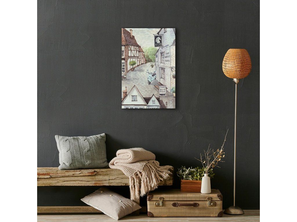 Verleihen Sie Ihrem Interieur eine außergewöhnliche Atmosphäre mit dem Gemälde "Dorf". Das Gemälde ist auf hochwertiger Baumwollleinwand mit unregelmäßiger Struktur Canwas PowerSol Satin gedruckt. Die Oberfläche ist reißfest und verleiht der Leinwand zudem ein samtiges Aussehen. Das Gemälde wird bereits auf einem Holzrahmen gespannt geliefert und verfügt über eine Aufhängung zur Wandmontage. Produkte mit demselben Motiv können aufgrund unterschiedlicher Drucktechnologien leicht in der Farbintensität variieren.Zusätzliche Parameter