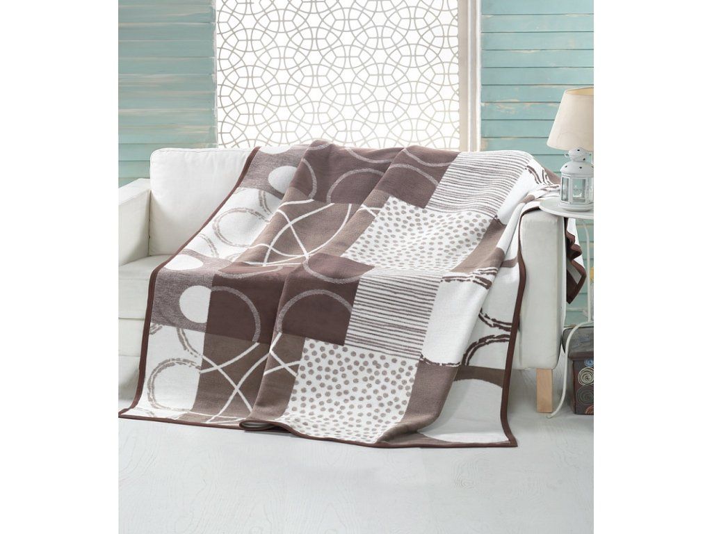 Luxuriöse Baumwolldecke mit dichtem Flor, warm und weich im Griff. Die neue Webrezeptur garantiert Leichtigkeit und hervorragende Atmungsaktivität. Die Decke Brenton wird zu einem einzigartigen Accessoire in Ihrem Zuhause und einem unverzichtbaren Begleiter für kühle Abende. Sie können die Decke auch elegant als dekorativen Überwurf verwenden. Die Decke, die mit einer umgekehrten Farbgebung glänzt, ist rundum mit farblich abgestimmter Einfassung versehen. Design: geometrisches Muster in den Farben Creme-Weiß, Nougat und Braun Materialzusammensetzung: 60 % Baumwolle, 40 % Acryl Maße: 160/220 cm Gewicht: 450 g/m2 Die Decke kann bei 30 °C mit einem Feinwaschmittel gewaschen werden. Die Farbgebung der Decke kann aufgrund des anderen Materials und der unterschiedlichen Drucktechnologie leicht von anderen Produkten mit dem gleichen Motiv abweichen.Zusätzliche Parameter