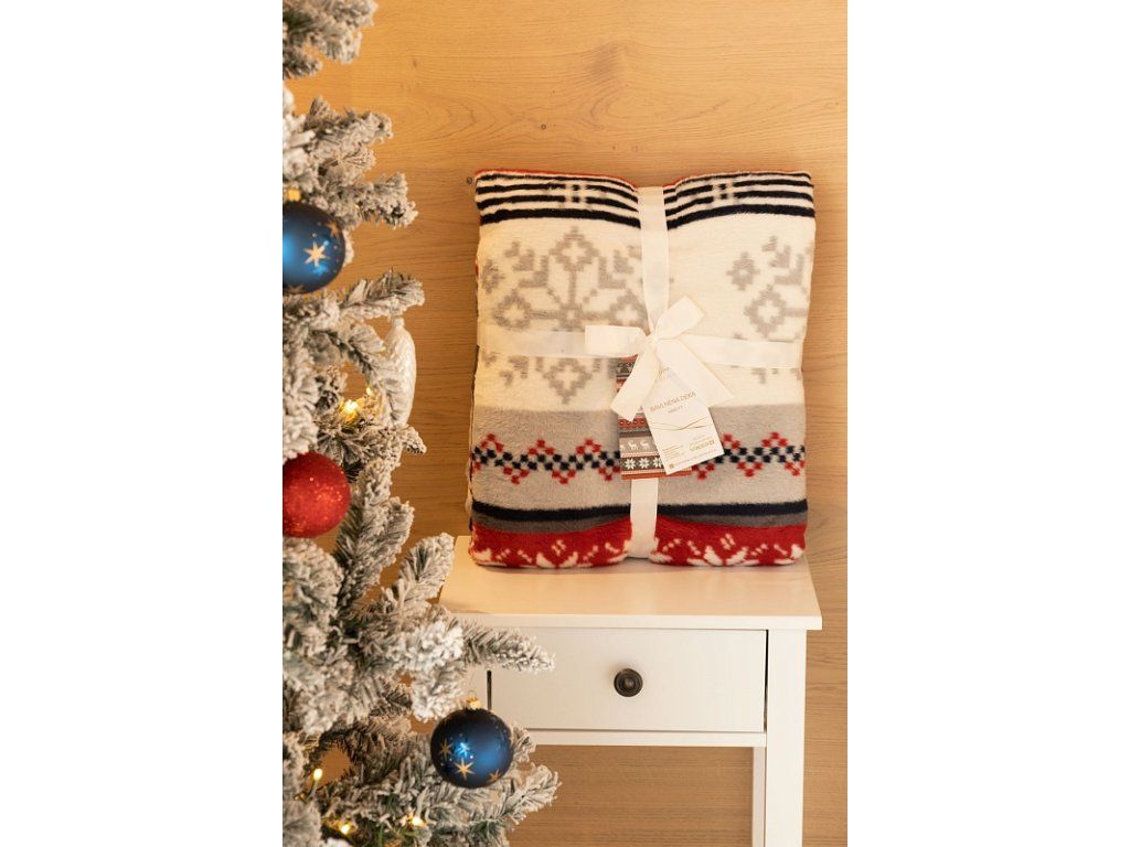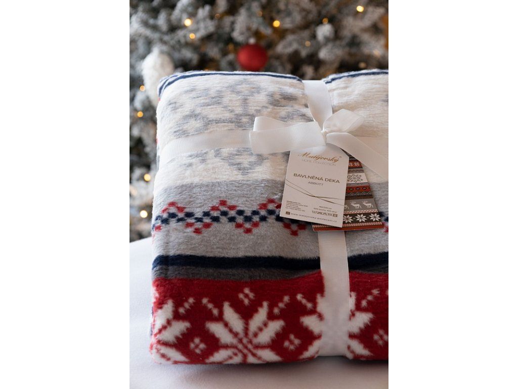 Luxuriöse Baumwolldecke mit dichtem Flor, warm und weich im Griff. Die neue Webrezeptur garantiert Leichtigkeit und hervorragende Atmungsaktivität. Die Abbott-Decke wird zu einem einzigartigen Accessoire in Ihrem Zuhause und einem unverzichtbaren Begleiter für kühle Abende. Sie können die Decke auch elegant als dekorativen Überwurf verwenden. Die Decke, die mit einer umgekehrten Farbgestaltung prahlt, ist rundum mit farblich abgestimmter Einfassung versehen. Design: Variationen von Weihnachtsmotiven in Grau, Anthrazit, Rot und Weiß Materialzusammensetzung: 60 % Baumwolle, 40 % Acryl Maße: 160/220 cm Gewicht: 450 g/m2 Die Decke kann bei 30 °C mit einem milden Waschmittel gewaschen werden.Zusätzliche Parameter