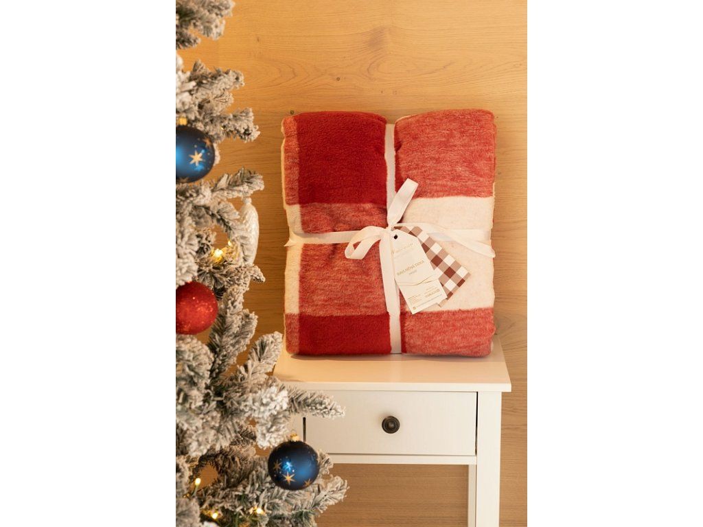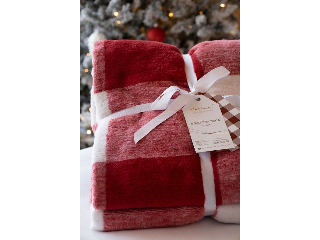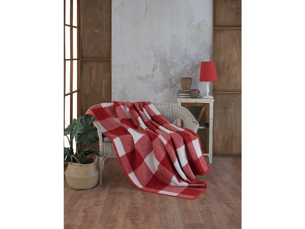 Luxuriöse Baumwolldecke mit dichtem Flor, warm und angenehm weich im Griff. Die neue Webrezeptur garantiert Leichtigkeit und hervorragende Atmungsaktivität. Die Hygee-Decke wird zu einem einzigartigen Accessoire in Ihrem Zuhause und einem unverzichtbaren Begleiter für kühle Abende. Die Decke kann auch elegant als dekorative Überwurf genutzt werden. Die Decke, die mit einer umgekehrten Farbgebung glänzt, ist rundum mit farblich abgestimmter Einfassung gesäumt. Design: festliches Karomuster in traditioneller Rot-Weiß-Kombination Materialzusammensetzung: 60 % Baumwolle, 40 % Acryl Maße: 160/220 cm Gewicht: 450 g/m2 Die Decke kann bei 30 °C mit einem Feinwaschmittel gewaschen werden.Zusätzliche Parameter
