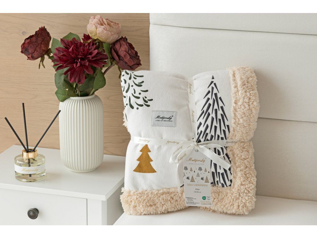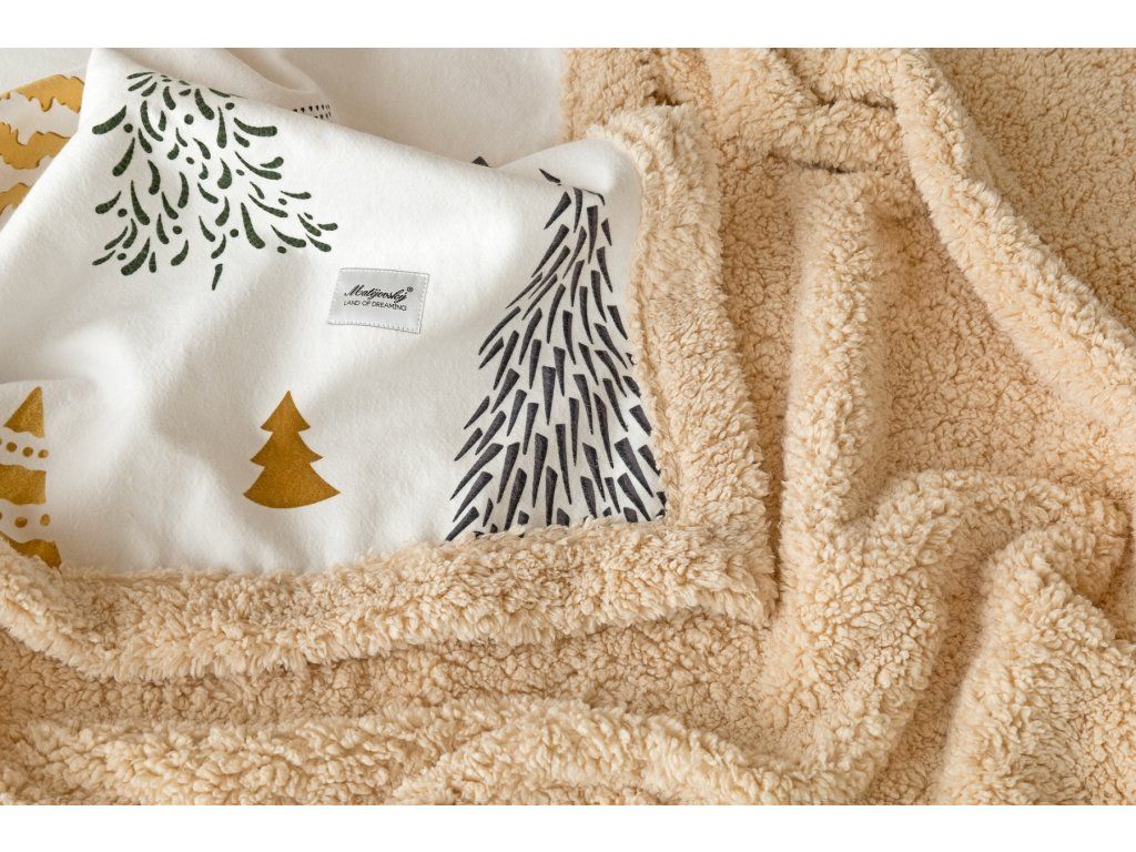 Die Winterabende im gemütlichen Zuhause werden mit der neuen Kollektion von Flanelldecken mit Lamm noch angenehmer. Es ist mehr als nur eine Decke - mit der Lammdecke erhalten Sie einen weichen Begleiter, den Sie mit niemandem teilen möchten. Kuscheln Sie sich ein, machen Sie es sich gemütlich! Dank sorgfältig ausgewählter Motive, die mit Bettwäsche und anderen Wohnaccessoires kombiniert werden können, darf die Lammdecke Alder nicht in Ihrer häuslichen Oase der Ruhe und Gemütlichkeit fehlen. Oberseite: Premium-Flanell (100% Baumwolle)Unterseite: weiches flauschiges Lamm (100% Polyester) Die Lammdecke kann bei 30°C in der Waschmaschine gewaschen werden. Es wird empfohlen, ein schonendes Programm mit niedrigeren Schleudertouren zu verwenden. Es ist ratsam, flüssige Waschmittel zu wählen und auf die Verwendung von Weichspüler zu verzichten, da dieser die Fasern der unteren Schicht unerwünscht umhüllen und verkleben kann. Die Flanelldecken mit Lamm erfüllen die Kriterien der internationalen Zertifizierung Oeko-Tex Standard 100.Zusätzliche Parameter