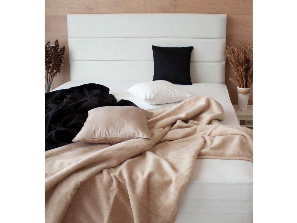 Die luxuriöse Decke Ruby mit einem hohen Anteil an Baumwolle wird Ihnen kalte Abende versüßen. Die neue Webrezeptur garantiert Leichtigkeit und hervorragende Atmungsaktivität, die Decke ist gleichzeitig wunderbar warm und samtig weich im Griff. Die einfarbige Decke kann auch elegant als dekorative Überwurf genutzt werden. Die Ränder der Decke sind mit einer Borte versehen. Farbe: Hellbraun Maße: 160/220 cm Materialzusammensetzung: 60 % Baumwolle, 40 % Acryl Grammatur: 450 g/m2 Die Decke kann bei 30 °C mit einem Feinwaschmittel gewaschen werden.Zusätzliche Parameter