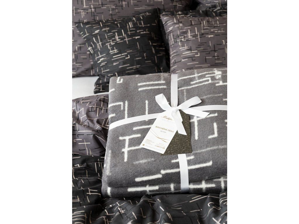 Luxuriöse Baumwolldecke mit dichtem Flor, warm und weich im Griff. Die neue Webrezeptur garantiert Leichtigkeit und hervorragende Atmungsaktivität. Die Decke Setter wird zu einem einzigartigen Accessoire für Ihr Zuhause und einem unverzichtbaren Begleiter für kühle Abende. Die Decke kann auch elegant als dekorative Überwurf verwendet werden. Die Decke, die mit einer umgekehrten Farbgestaltung prahlt, ist rundum mit farblich abgestimmter Einfassung versehen. Design: abstraktes geometrisches Muster in Anthrazitgrau und Cremeweiß Materialzusammensetzung: 60 % Baumwolle, 40 % Acryl Maße: 160/220 cm Grammatur: 450 g/m2 Die Decke kann bei 30 °C mit einem Feinwaschmittel gewaschen werden. Die Farbgebung der Decke unterscheidet sich von anderen Produkten mit dem gleichen Motiv aufgrund des anderen Materials und der unterschiedlichen Drucktechnologie.Zusätzliche Parameter