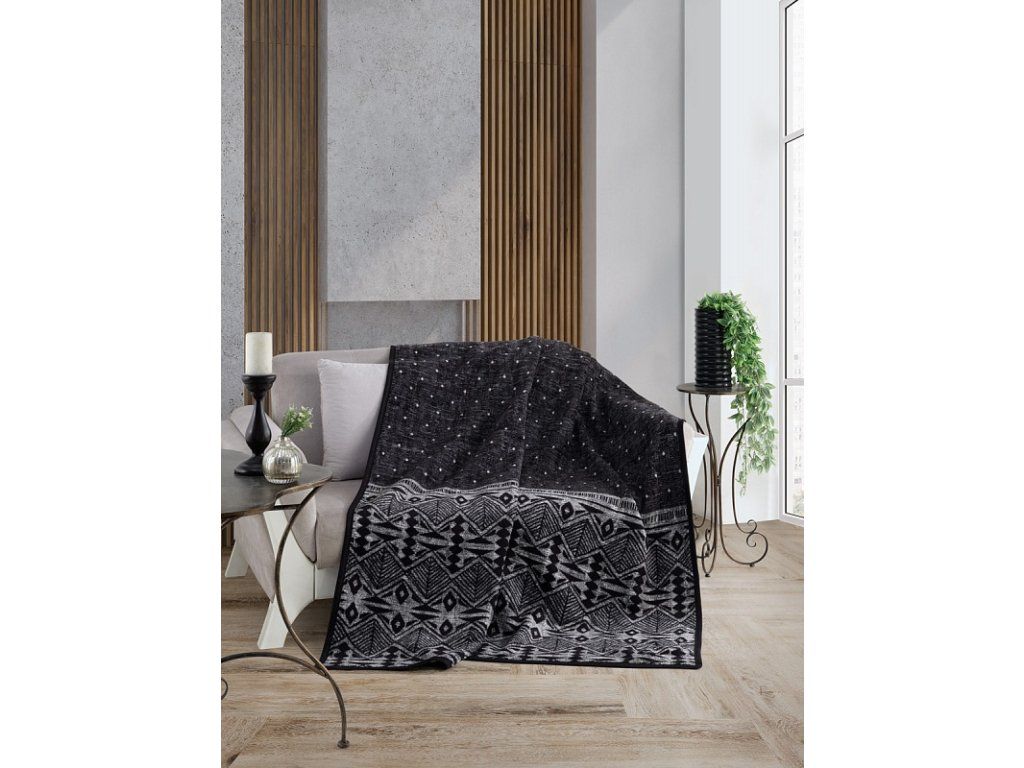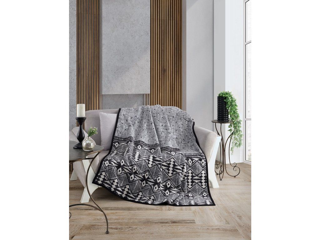 Luxuriöse Baumwolldecke mit dichtem Flor, warm und weich im Griff. Die neue Webrezeptur garantiert Leichtigkeit und hervorragende Atmungsaktivität. Die Etno-Decke wird zu einem einzigartigen Accessoire in Ihrem Zuhause und einem unverzichtbaren Begleiter für kühle Abende. Die Decke kann auch elegant als dekorative Überwurf genutzt werden. Die Decke, die mit einer umgekehrten Farbgebung glänzt, ist rundum mit farblich abgestimmter Einfassung gesäumt. Design: beeindruckendes geometrisches Muster in den Farben Weiß, Grau und Schwarz. Materialzusammensetzung: 60 % Baumwolle, 40 % Acryl. Maße: 160/220 cm. Grammatur: 450 g/m2. Die Decke kann bei 30 °C mit einem milden Waschmittel gewaschen werden. Die Farbgebung der Decke kann aufgrund des anderen Materials und der unterschiedlichen Drucktechnologie leicht von anderen Produkten mit dem gleichen Motiv abweichen.Zusätzliche Parameter