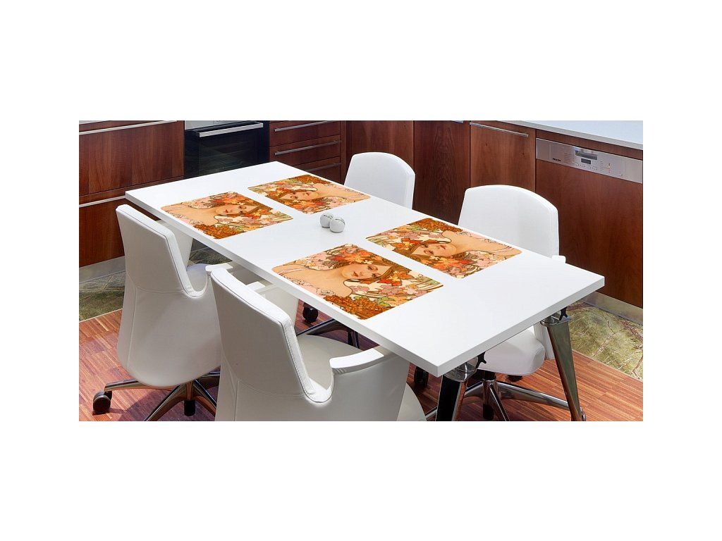 Die Tischdecke aus der Kollektion von Alfons Mucha ergänzt jeden Innenraum stilvoll. Maße: 35x45 cm Material: PVC Frontlit - weiches Banner mit einer Flächengewicht von 510 g/m2. Matt glatte Oberfläche. Die Unterseite ist weiß. Die Kanten sind abgerundet. Pflege: Wir empfehlen, mit einem feuchten Schwamm und Seifenlauge abzuwischen. Das Material ist gemäß der deutschen Norm DIN 4102 als B1 zertifiziert und schwer entflammbar. Der fotorealistische Druck wird mit HP Latex-Tinten gewährleistet, die die Anforderungen an ökologischen Druck erfüllen. Diese Tinten sind gesundheitlich unbedenklich und zeichnen sich durch eine lange Lebensdauer aus. Nicht in Verbindung mit heißen Gegenständen und erhitzten Küchenutensilien verwenden.Zusätzliche Parameter