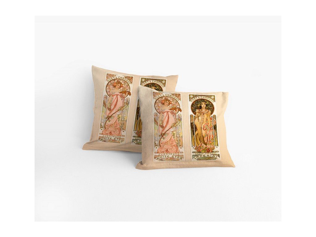Die neueste digitale Drucktechnologie hat es uns ermöglicht, eine limitierte Edition von dekorativen Bezügen aus dem Werk von Alphonse Mucha herzustellen, die wunderschöne Farben und präzise Details aufweisen. Der Bezug ist aus 100% Deluxe-Baumwolle gefertigt, das Motiv ist auf beiden Seiten des Kissens gleich. Selbstverständlich ist ein praktischer Reißverschlussverschluss vorhanden. Wir empfehlen, passende Füllungen der Größe 40/40 cm zu den Bezügen zu erwerben.Zusätzliche Parameter