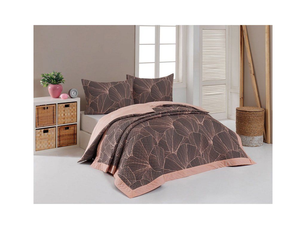 Die Flop-Bettüberwurf ist eine einzigartige ästhetische und praktische Ergänzung, mit der Ihr Bett immer perfekt gemacht ist. Als Füllung wird geschichtetes Hohlfaser mit hoher Grammatur verwendet. Das Obermaterial besteht aus 100% Baumwollstoff im gleichen Design wie die Bettwäsche. Die gesamte Fläche ist mit dekorativen Steppungen versehen, um die Stabilität der Füllung zu gewährleisten und gleichzeitig das Gesamtbild des Überwurfs zu betonen. Füllgewicht: 150 g/m2 Farbdesign: Abstraktes florales Motiv, das in hellen Konturen auf einem anthrazitgrauen Hintergrund auf der einen Seite eingearbeitet ist, während der Hintergrund auf der anderen Seite in pudrigem Rosa gehalten ist. Die Ränder sind mit einer pudrig rosa Einfassung verziert, ergänzt durch eine hellrosa Paspel auf einer Seite. Pflege: Die Überwürfe können in einer ausreichend großen Waschmaschine bei 40°C gewaschen werdenZusätzliche Parameter