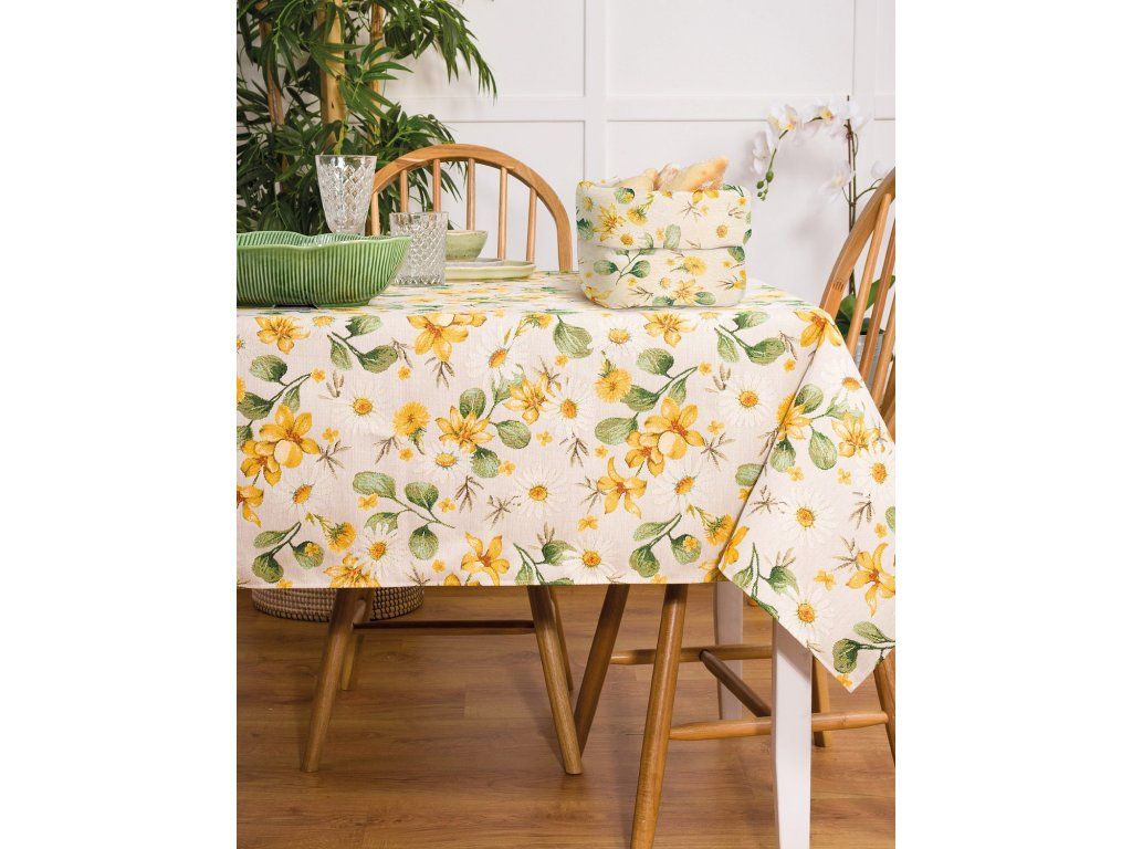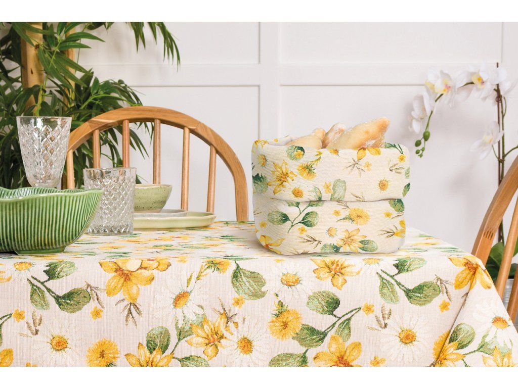 Alle Liebhaber von stilvollen Accessoires werden von der Kollektion gewebter Tischdecken begeistert sein, die den Esstisch und das Picknick auf der Terrasse perfekt ergänzen. Die Tischdecke Solis mit dem Motiv von Wiesenblumen ist ein originelles und praktisches Accessoire. Sie wird Sie mit ihrer präzisen Verarbeitung und vielfältigen Anwendungsmöglichkeiten im Haushalt überzeugen. Die Tapestry-Tischdecken können mühelos mit anderen Küchenaccessoires aus gewebtem Material kombiniert werden. Lassen Sie sich von unserem Angebot an empfohlenen Produkten inspirieren und verfeinern Sie Ihr Interieur bis zur Perfektion. Die Tischdecke kann bei 30°C gewaschen werden. Material: 60% Polyester, 24% Baumwolle, 16% AcrylZusätzliche Parameter