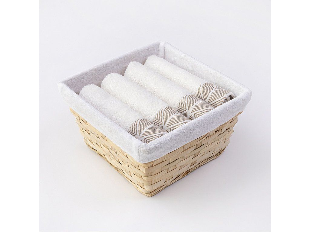 Die elegante und praktische Verpackung der Handtücher Beech wird zu einem originellen Geschenk. Inhalt des Pakets: Handtuch Beech, Größe 30/50 cm (4 Stück) Zusammensetzung: 70% Modal, 30% BaumwolleGewicht: 550 g/m2Farbe: cremeweiß Die Handtücher Beech mit einem hohen Anteil an Modalfasern, die aus Buchenholz gewonnen werden, sind weich und luftig. Der natürliche Glanz der Modalfasern verleiht der Oberfläche einen außergewöhnlichen Zauber. Die exklusive Serie der Modaltücher Beech kombiniert sorgfältig ausgewählte attraktive Farbtöne mit einer eleganten bestickten Bordüre in Form von Modalblättern. Modaltücher trocknen sehr schnell und sind daher besonders für Badezimmer ohne natürliche Belüftung geeignet. Ein Korb mit textiler Einlage ist im Paket enthalten. Die Handtücher sind mit einer Schlaufe versehen.Zusätzliche Parameter