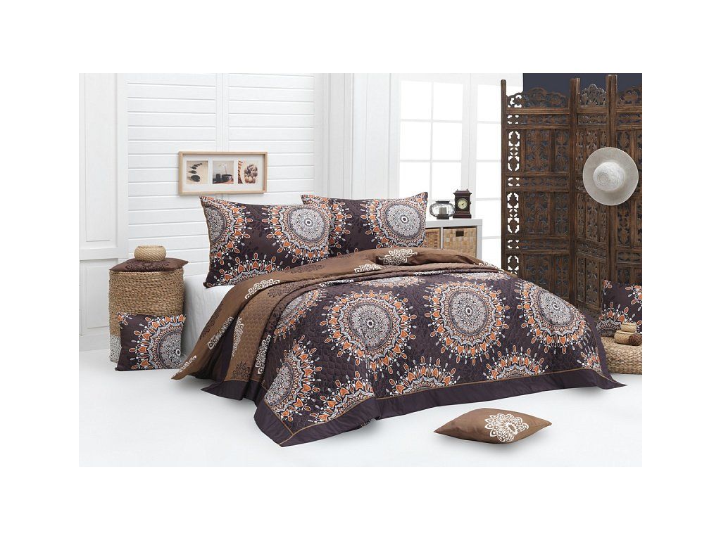 Die Tagesdecke CARAMEL ist ein bezauberndes und praktisches Accessoire, mit dem Ihr Bett immer perfekt gemacht ist. Als Füllung wird geschichtetes Hohlfaser verwendet. Die Farbgestaltung entspricht dem Muster der Bettwäsche, beide Seiten der Tagesdecke sind gleich. Das Obermaterial besteht aus 100% Baumwollstoff, die Tagesdecke ist zudem mit farblich abgestimmter Paspelierung versehen. Auf der gesamten Fläche ist eine dekorative Steppung aufgebracht, um die Stabilität der Füllung zu gewährleisten und gleichzeitig das Gesamtbild der Tagesdecke zu betonen. Um Ihr Schlafzimmer noch perfekter zu machen, empfehlen wir auch Bettwäsche im selben Design dazu zu kaufen. Pflege: Die Tagesdecken können bei 40 °C in der Waschmaschine gewaschen werden.Zusätzliche Parameter