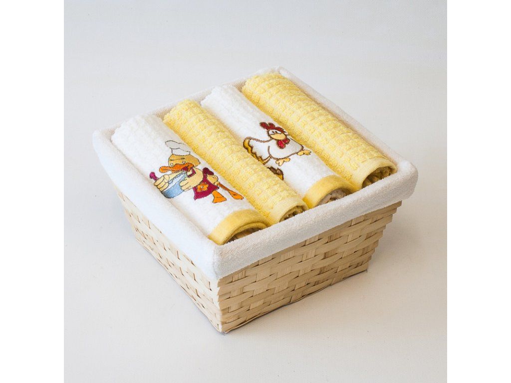 Korb mit Frottee-Geschirrtüchern Entchen - Hühnchen