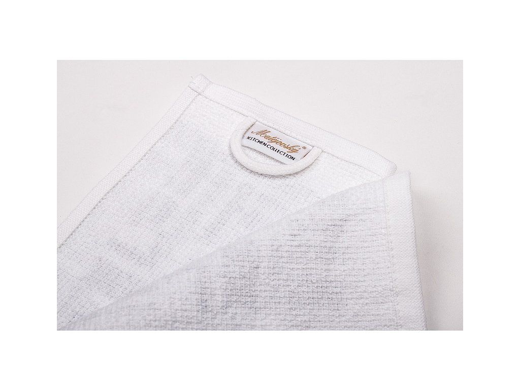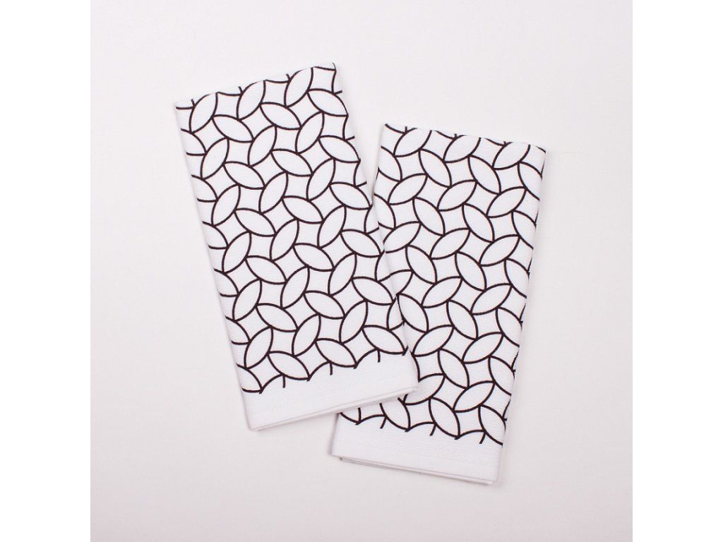 Die neuesten Trends für Ihre Küche bringt die neue Kollektion bedruckter Frottee-Handtücher aus 100% Baumwolle! Die Küchenhandtücher sind durch ihre praktische Ausführung interessant. Die Oberseite ist glatt mit feiner Wellenstruktur, die Unterseite besteht aus weichem weißen Frottee. Ein einfaches geometrisches Muster in Schwarz-Weiß ergänzt stilvoll jedes moderne Kücheninterieur. Die Handtücher sind an allen vier Seiten gesäumt und mit einer praktischen Schlaufe zum Aufhängen versehen. Der elegant verpackte Satz enthält zwei identische Handtücher im Format 40/60 cm. Grammatur: 350 g/m2Pflege: Waschbar in der Waschmaschine bei 60 °C.Zusätzliche Parameter