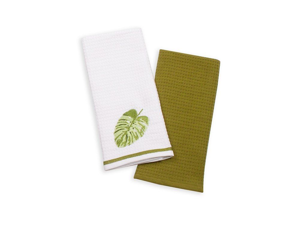 Geschirrtücher sind eine praktische Ergänzung für jeden Haushalt. Die traditionelle Waffelstruktur in Kombination mit den feinsten 100% Baumwollgarnen garantiert eine hervorragende Saugfähigkeit und angenehme Haptik. Die Tücher sind mit einer praktischen Schlaufe zum Aufhängen versehen. Attraktive und präzise glänzende Stickereien ergänzen sich perfekt mit modernen Farbtönen in der gesamten Kollektion der Waffelgeschirrtücher. Das elegant verpackte Set enthält zwei farblich abgestimmte Geschirrtücher im Format 40/60 cm. 1x weißes Geschirrtuch mit Stickerei und grüner Bordüre 1x einfarbig grünes Geschirrtuch Gewicht: 350 g/m2 Pflege: Maschinenwaschbar bis 60 °CZusätzliche Parameter