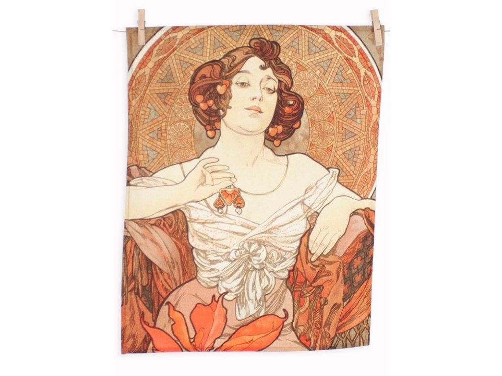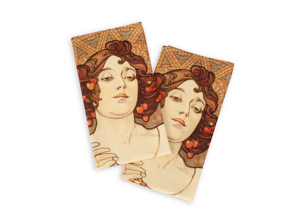 Die Kollektion von Baumwollküchentüchern mit Zeichnungen von Alphonse Mucha wird eine einzigartige Atmosphäre in Ihre Küche bringen. Die modernste digitale Drucktechnologie garantiert leuchtende Farben und präzise Details. Das hochwertige Baumwollmaterial zeichnet sich durch seine Weichheit, ausgezeichnete Saugfähigkeit und Geschmeidigkeit aus. Das Gewicht von 180 g/m2 garantiert eine feste Stoffstruktur und eine lange Lebensdauer. Die Tücher verfügen über eine praktische Schlaufe zum einfachen Aufhängen. Material: 100% Baumwolle Größe des Tuchs: 50/64 cm Druck: einseitig Pflege: waschbar in der Waschmaschine bei 60 °C, trocknergeeignet Die Geschenkverpackung enthält zwei Tücher.Zusätzliche Parameter