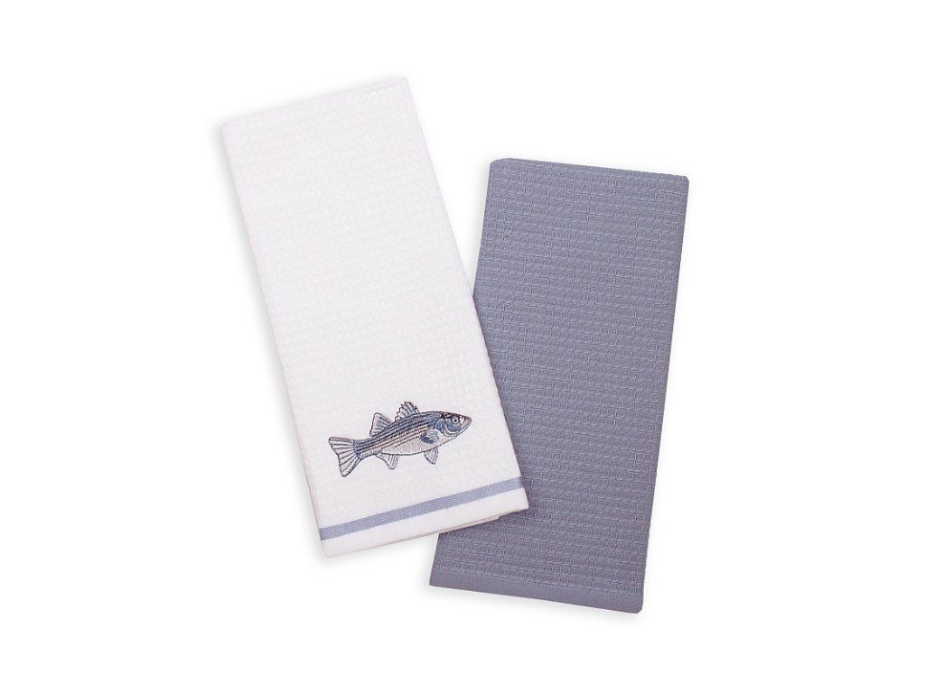 Geschirrtücher sind ein unverzichtbares Accessoire, ohne das kein moderner Haushalt auskommt. Die traditionelle Waffelstruktur in Kombination mit den feinsten 100% Baumwollgarnen garantiert eine hervorragende Saugfähigkeit und angenehme Haptik. Die Tücher sind mit einer praktischen Schlaufe zum Aufhängen versehen. Attraktive und präzise glänzende Stickereien ergänzen sich hervorragend mit bezaubernden Farbtönen in der gesamten Kollektion der Waffelgeschirrtücher. Der elegant verpackte Set enthält zwei farblich abgestimmte Geschirrtücher im Format 40/60 cm. 1x weißes Geschirrtuch mit Stickerei und gedämpfter blauer Bordüre 1x gedämpft blaues einfarbiges Geschirrtuch Gewicht: 350 g/m2 Pflege: Maschinenwaschbar bis 60 °CZusätzliche Parameter