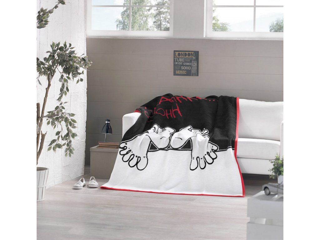 Luxuriöse Baumwolldecke mit dichtem Flor, warm und weich im Griff. Die neue Webrezeptur garantiert Leichtigkeit und hervorragende Atmungsaktivität. Die Decke Love Night wird zu einem originellen Accessoire in Ihrem Zuhause und einem unverzichtbaren Begleiter für kühle Abende. Sie können die Decke auch elegant als dekorative Überwurf verwenden. Die Decke, die mit einer umgekehrten Farbgebung glänzt, ist rundum mit farblich abgestimmter Borte eingefasst. Design: fröhliches Motiv in den Farben Weiß, Schwarz und Rot Materialzusammensetzung: 60 % Baumwolle, 40 % Acryl Maße: 160/220 cm Grammatur: 450 g/m2 Die Decke kann bei 30 °C mit einem milden Waschmittel gewaschen werden. Die Farbgebung der Decke kann aufgrund des anderen Materials und der unterschiedlichen Drucktechnologie leicht von anderen Produkten mit dem gleichen Motiv abweichen.Zusätzliche Parameter