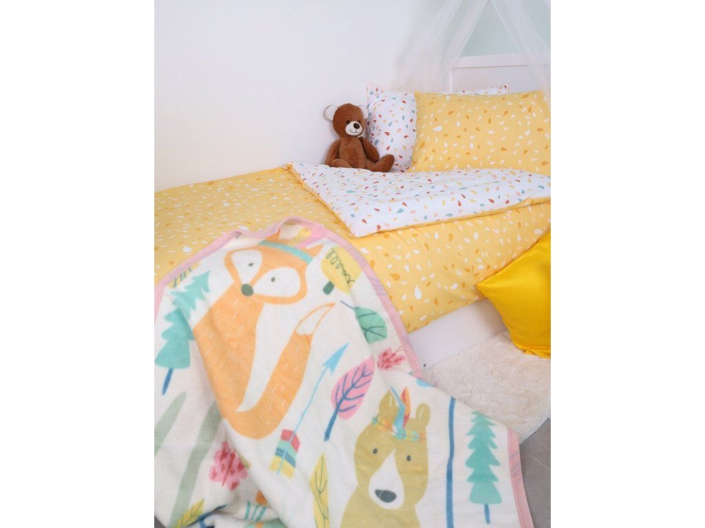 Die Kinderdecke mit einem hohen Anteil an Baumwolle und dichtem Flor ist angenehm warm und weich im Griff. Die Decke Lotta wird ein großartiger Begleiter im Kinderzimmer oder auch im Kinderwagen sein. Das fröhliche Motiv mit niedlichen Waldbewohnern in modernen Pastelltönen wird den Tag jedes Kindes erhellen. Die Decke ist auf der Rückseite einfarbig - die hellrosa Farbe auf der Rückseite der Decke passt zum Saum, mit dem die Decke rundherum eingefasst ist. Materialzusammensetzung: 55 % Acryl, 35 % Baumwolle, 10 % Polyester Maße: 90/130 cm Grammatur: 450 g/m2 Die Decke kann bei 30 °C mit einem milden Waschmittel gewaschen werden.Zusätzliche Parameter