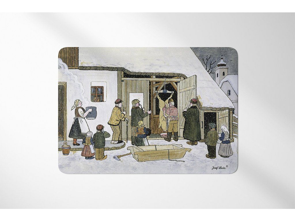 Die Tischdecke aus der Josef Lada Kollektion wird eine zauberhafte Atmosphäre in Ihr Esszimmer bringen. Maße: 35x45 cm Material: PVC Frontlit - weiches Banner mit einer Flächengewicht von 510 g/m2. Matt glatte Oberfläche. Die Unterseite ist weiß. Die Kanten sind abgerundet. Pflege: Wir empfehlen, mit einem feuchten Schwamm und Seifenlauge abzuwischen. Das Material ist gemäß der deutschen Norm DIN 4102 als B1 zertifiziert für Nichtentflammbarkeit. Der fotorealistische Druck wird mit HP Latex-Tinten sichergestellt, die ökologischen Druckanforderungen entsprechen. Diese Tinten sind gesundheitlich unbedenklich und zeichnen sich durch eine lange Lebensdauer aus. Nicht in Verbindung mit heißen Gegenständen und erhitztem Küchengeschirr verwenden.Zusätzliche Parameter