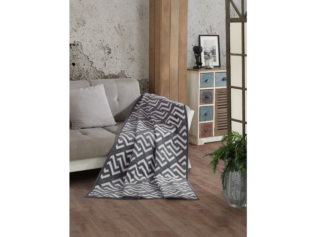 Luxuriöse Baumwolldecke mit dichtem Flor, warm und weich im Griff. Die neue Webrezeptur garantiert Leichtigkeit und hervorragende Atmungsaktivität. Die Decke Silvio wird zu einem einzigartigen Accessoire für Ihr Zuhause und einem unverzichtbaren Begleiter für kühle Abende. Sie können die Decke auch elegant als dekorative Überwurf verwenden. Die Decke, die mit einer umgekehrten Farbgebung glänzt, ist rundum mit farblich abgestimmter Einfassung versehen. Design: beeindruckendes geometrisches Muster in Kombination aus Blaugrau und Cremeweiß Materialzusammensetzung: 60 % Baumwolle, 40 % Acryl Maße: 160/220 cm Grammatur: 450 g/m2 Die Decke kann bei 30 °C mit einem Feinwaschmittel gewaschen werden.Zusätzliche Parameter
