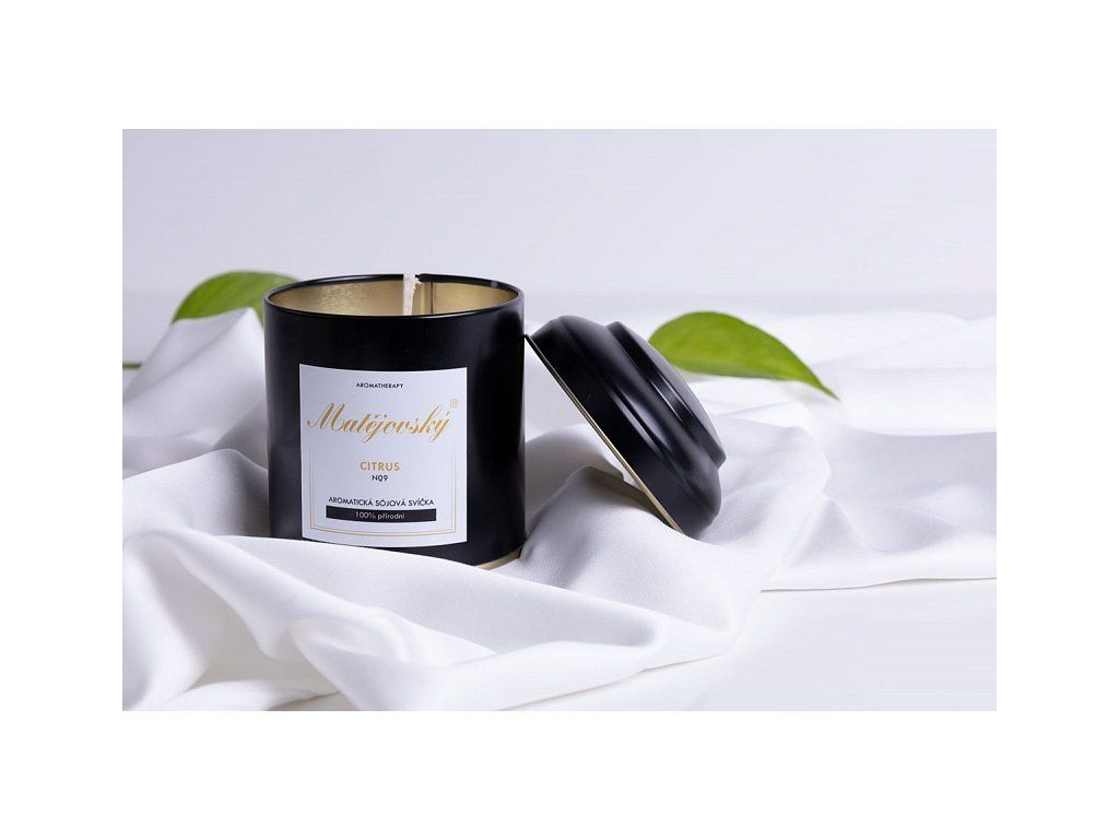 [DE] Atmosféra, kterou dokáže vykouzlit plápolající plamínek svíčky, je nenahraditelná. A ta vůně! Provoňte chvíle pohody příjemným aroma přesně podle své nálady i vkusu. Harmonicky vyvážené vůně skvěle doplňuje i designové balení v černé dóze s detaily ve zlatém dekoru. Elegantní aromatická svíčka z přírodního sójového vosku a vonných olejů bude dokonalým dárkem pro muže i ženy. Základem vonného oleje jsou svěží citrusové tóny, které vnesou do interiéru povzbuzující atmosféru. Složení: 100% přírodní sojový vosk, vonný olej, bavlněný knot Obsah: 400 gramů Produkt vhodný pro vegany.Zusätzliche Parameter