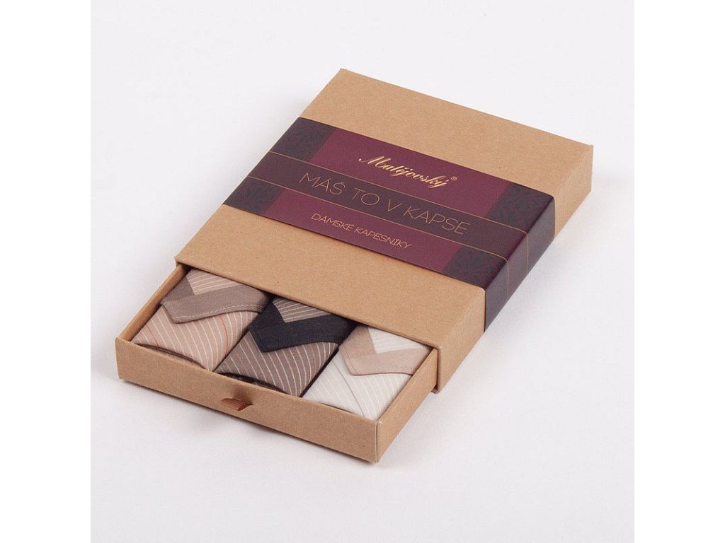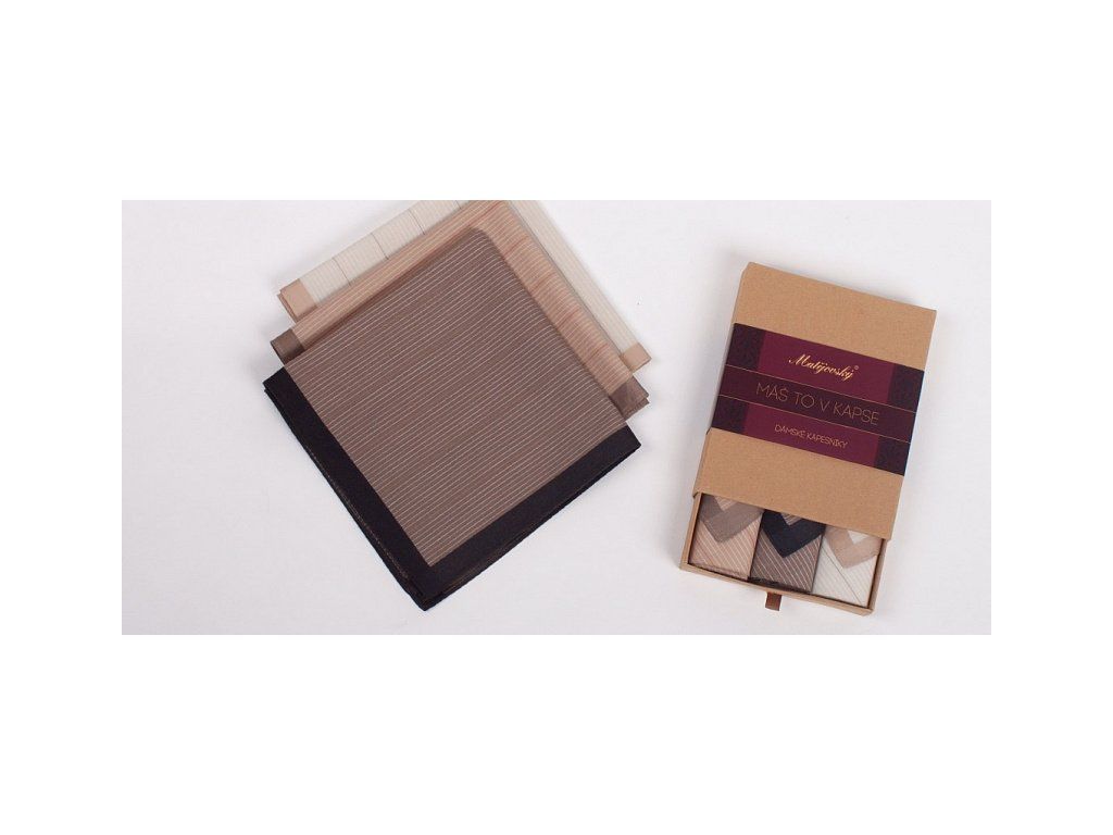 Eleganz bis ins letzte Detail durchdacht. Das traditionelle Baumwolltaschentuch ist nicht nur ein praktischer Helfer in vielen alltäglichen Momenten, sondern auch ein Symbol für Eleganz und raffinierten Stil. Ein Set von drei farblich abgestimmten Stofftaschentüchern, die durch ihre Weichheit und Saugfähigkeit bestechen, wird dank der originellen Verpackung zum idealen Geschenk für jede Dame.Zusätzliche Parameter