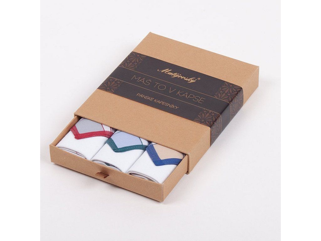 Eleganz bis ins letzte Detail durchdacht. Das traditionelle Baumwolltaschentuch ist nicht nur ein praktischer Helfer in vielen alltäglichen Momenten, sondern auch ein Symbol für Eleganz und raffinierten Stil. Ein Set von drei farblich abgestimmten Stofftaschentüchern, die durch ihre Weichheit und Saugfähigkeit bestechen, wird dank der originellen Verpackung zum idealen Geschenk für den modernen Gentleman.Zusätzliche Parameter