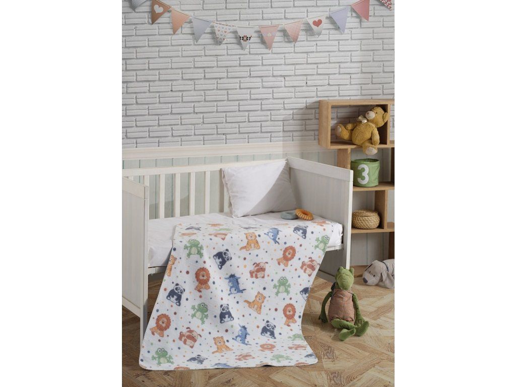 Die Kinderdecke Terry mit einem hohen Anteil an Baumwolle und dichtem Flor, warm und weich im Griff, wird ein großartiger Begleiter im Kinderzimmer oder auch im Kinderwagen sein. Niedliche bunte Tiere zaubern ein Lächeln auf das Gesicht des Kindes. Die neutrale Farbkombination eignet sich für Mädchen und Jungen. Die Rückseite der Decke ist einfarbig in leuchtendem Orange. Der Rand der Decke ist mit einem orangefarbenen Besatz verziert. Materialzusammensetzung: 55% Acryl, 35% Baumwolle, 10% Polyester. Maße: 90/130 cm. Grammatur: 450 g/m2. Die Decke kann bei 30 °C mit einem milden Waschmittel gewaschen werden.Zusätzliche Parameter